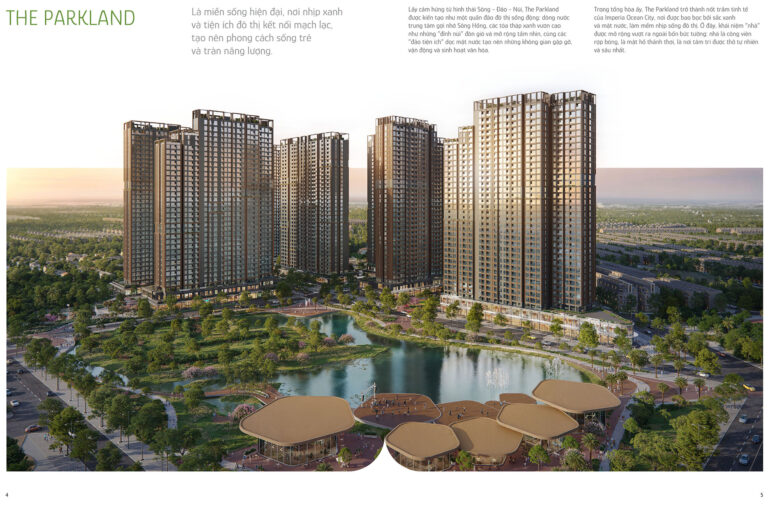 Imperia Ocean City The Parkland là 35 tòa căn hộ cao cấp nằm bên trong khu đô thị Vinhomes Ocean Park 2 Hưng Yên, do tập đoàn MIK Group làm chủ đầu tư. The Parkland sở hữu vị trí cửa ngõ phía Nam Vinhomes Ocean Park 2, ôm trọn sông xanh & công viên rộng lớn, kết hợp triết lý “Live in motion”: Sống năng động nhưng vẫn giữ sự cân bằng, hứa hẹn sẽ trở thành tâm điểm sống – làm việc – giải trí mới dành cho những người trẻ tuổi tại thành phố biển Ocean City.